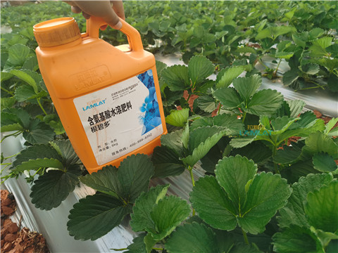但是在選擇水溶肥時,一般不超過34個鉀,因為鉀過多會導致草莓早熟,就是果還沒膨起來,就開始紅了,這樣是賣不上價格的。所以他選擇使用拉姆拉八珍玉食大量元素水溶肥,在草莓使用水溶肥期間,前期苗期以生根壯苗為主,又使用拉姆拉翠姆根碧多,后期以膨果著色為主,追肥時間7-10天左右一次,建議滴灌。