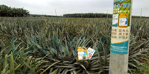 由于鳳梨根系淺,在鳳梨定植時(shí),王大哥使用翠姆根碧多+翠姆微生物菌劑,滴灌2畝地,促進(jìn)根系發(fā)達(dá),使根扎得更深,提高苗的成活率,減少鳳梨苗的干尖黃葉,為后期提升產(chǎn)量品質(zhì)打基礎(chǔ)。